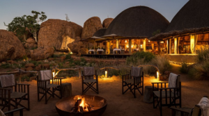 A fantastic base for exploring the world-famous rock engravings of Twyfelfontein, Mowani Mountain Camp has bungalow-style rooms that blend in beautifully with the rocky hills of Damaraland. The camp has a swimming pool, a restaurant and a bar, all of which take advantage of the camp’s terrific location.